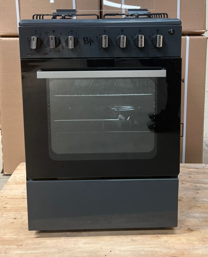 The BJS 60×60 Gas Cooker features 3 gas burners, 1 hot plate, a turbo fan oven, and a gas sensor for safety. Available in grey, silver, and black, it’s the perfect choice for versatile and reliable cooking.