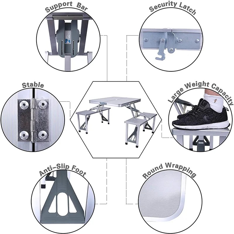 - All-in-One Design: Combines a foldable table and chairs for a complete outdoor seating solution.