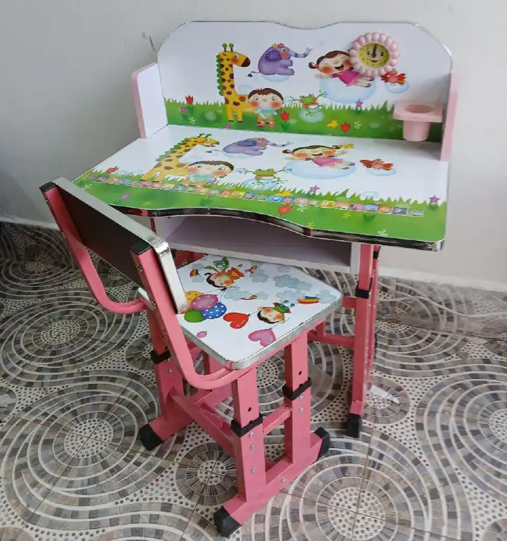 Generic Kids Study Table and Chair Set – Strong metal and wood construction, ergonomic design, and multi-purpose use for studying, writing, or computer work. Perfect for kids’ learning spaces.