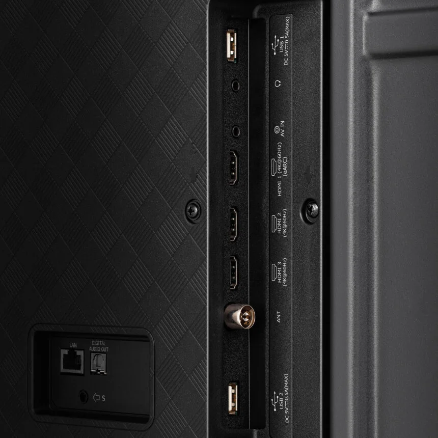 - 3 HDMI ports, 2 USB slots, and a modern frameless design.