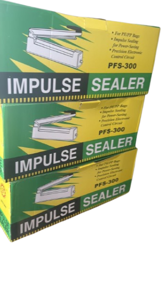 300mm impulse sealer with metallic body for airtight sealing of plastic bags. Ideal for food, retail, and warehouse use. Durable, efficient, and easy to operate.